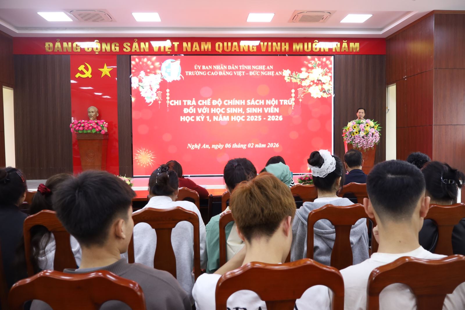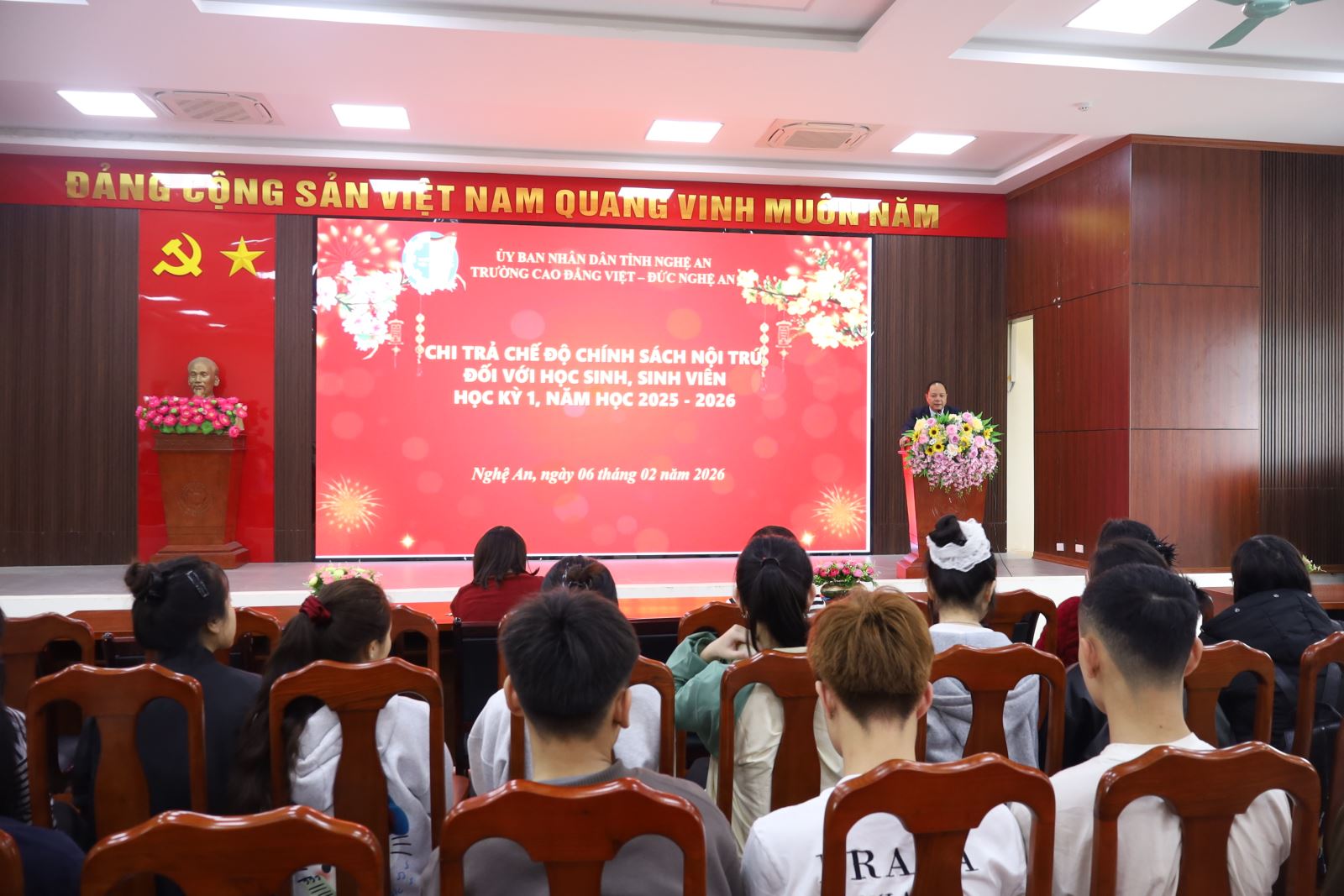 Trường Cao đẳng Việt – Đức Nghệ An cấp phát chế độ chính sách nội trú học kỳ I, năm học 2025 – 2026 cho học sinh, sinh viên trước kỳ nghỉ Tết Nguyên đán