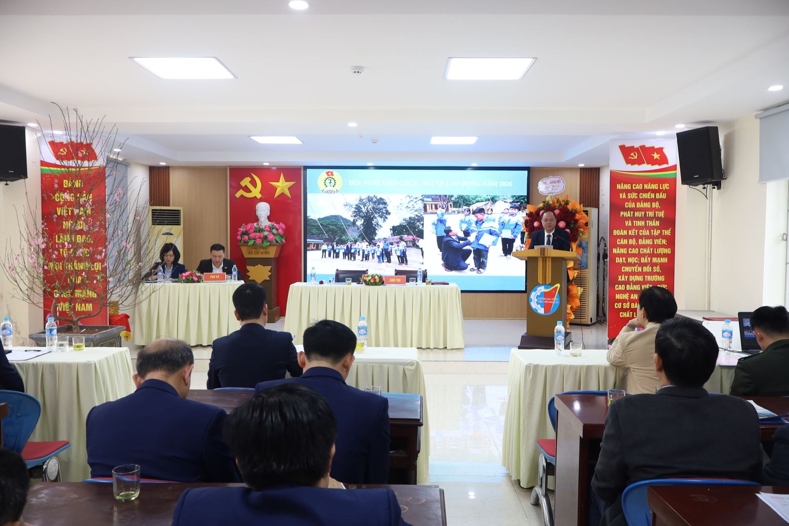 Phát biểu tại Hội nghị, đồng chí Lê Xuân Trình – Chủ tịch Công đoàn phường Trường Vinh ghi nhận và đánh giá cao những nỗ lực, kết quả mà tập thể Trường Cao đẳng Việt – Đức Nghệ An đã đạt được trong năm vừa qua. Đồng chí nhấn mạnh: Nhà trường cần tiếp tục phát huy tinh thần đoàn kết, đổi mới tư duy quản lý, nâng cao chất lượng đào tạo gắn với nhu cầu doanh nghiệp và thị trường lao động, đồng thời chú trọng xây dựng đội ngũ cán bộ, giảng viên đáp ứng yêu cầu phát triển trong giai đoạn mới. Bên cạnh đó, đồng chí cũng đề nghị Nhà trường quan tâm hơn nữa đến công tác chăm lo đời sống vật chất, tinh thần cho cán bộ, viên chức và người lao động, tạo động lực để hoàn thành tốt các nhiệm vụ được giao.
