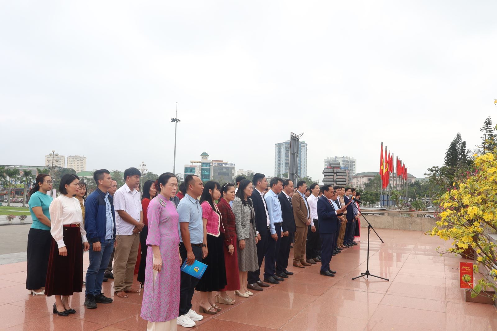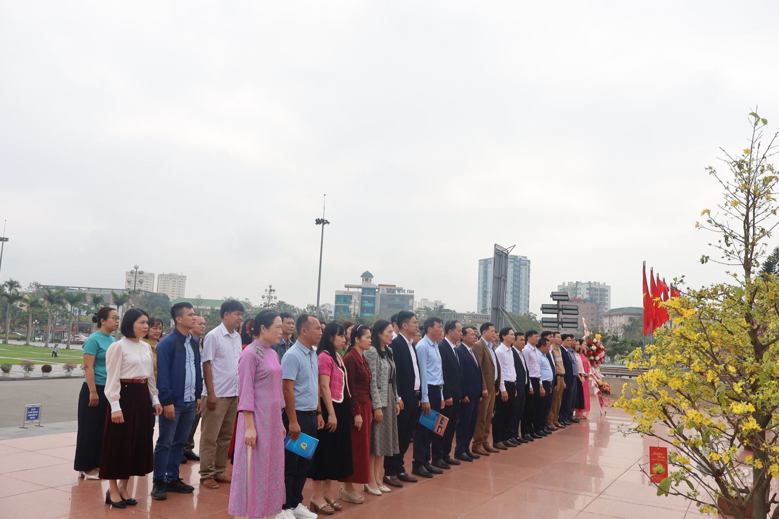Trong không khí ấm áp vui mừng, phấn khởi của ngày đầu năm mới, Đảng ủy, Ban Giám hiệu cùng toàn thể cán bộ, viên chức Nhà trường đã dâng hoa, dâng hương, báo công với Bác tại Quảng trường Hồ Chí Minh. Trước anh linh Chủ tịch Hồ Chí Minh, tập thể cán bộ, giảng viên và người lao động Nhà trường bày tỏ lòng thành kính, biết ơn sâu sắc đối với công lao to lớn của Người; đồng thời báo cáo những kết quả nổi bật trong công tác đào tạo, Giáo dục nghề nghiệp và khẳng định quyết tâm tiếp tục học tập, làm theo tư tưởng, đạo đức, phong cách Hồ Chí Minh trong năm mới.