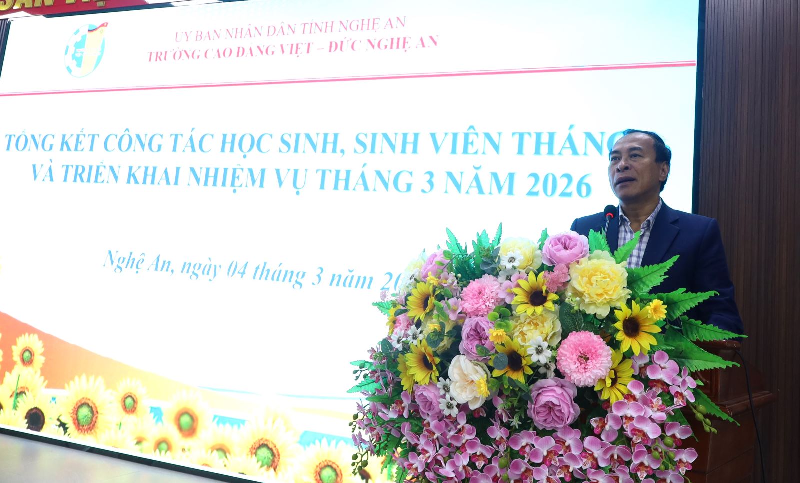 Trường Cao đẳng Việt – Đức Nghệ An tổ chức Tập trung học sinh, sinh viên, tổng kết công tác học sinh, sinh viên tháng 02 và triển khai nhiệm vụ tháng 03 năm 2026