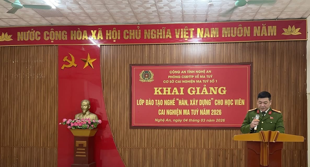 Sáng ngày 04/03/2026, Trường Cao đẳng Việt – Đức Nghệ An phối hợp với Cơ sở Cai nghiện Ma túy số 1 Nghệ An tổ chức Lễ Khai giảng lớp đào tạo nghề Hàn và nghề Kỹ thuật Xây dựng dành cho học viên đang cai nghiện, phục hồi tại đơn vị.