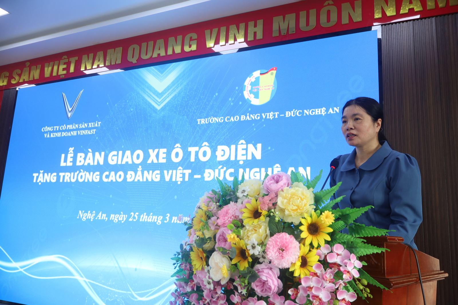 Tại buổi Lễ, đại diện lãnh đạo Sở Giáo dục và Đào tạo Nghệ An và Trường Cao đẳng Việt – Đức Nghệ An nhấn mạnh, chương trình hợp tác không chỉ mở ra cơ hội nâng cao chất lượng đào tạo ngành Công nghệ ô tô mà còn góp phần định hướng nghề nghiệp rõ ràng cho học sinh, sinh viên trong bối cảnh thị trường lao động đang có nhu cầu lớn về nguồn nhân lực kỹ thuật cao, đặc biệt trong lĩnh vực xe điện. Việc hợp tác giữa Nhà trường với VinFast – doanh nghiệp tiên phong trong sản xuất Ô tô điện tại Việt Nam được kỳ vọng sẽ tạo bước đột phá trong đào tạo gắn với thực tiễn.