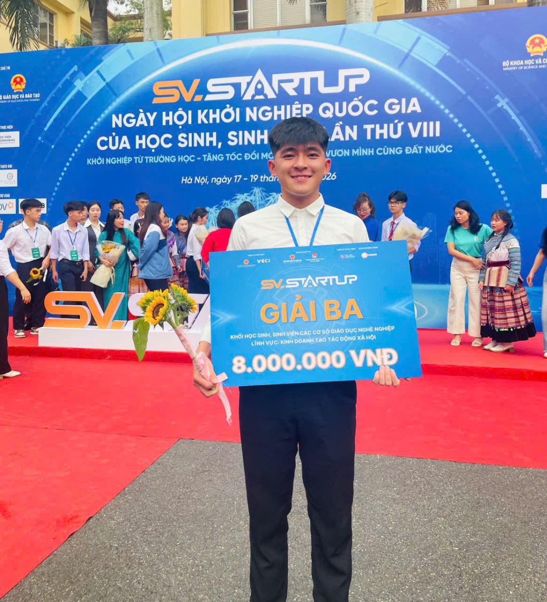 Thực hiện Quyết định số 336/QĐ-TTg của Thủ tướng Chính phủ và Văn bản số 1504/BGDĐT-HSSV về Chương trình “Hỗ trợ học sinh, sinh viên Khởi nghiệp giai đoạn 2026 – 2035” của Bộ Giáo dục và Đào tạo, trong khuôn khổ vòng Chung kết Ngày hội Khởi nghiệp Quốc gia của học sinh, sinh viên lần thứ VIII với chủ đề “Khởi nghiệp từ trường học – Tăng tốc đổi mới sáng tạo, vươn mình cùng đất nước”, đoàn Câu lạc bộ Khởi nghiệp Trường Cao đẳng Việt – Đức Nghệ An do ThS. Cao Anh Tuấn – Phó Hiệu trưởng, Chủ tịch Công đoàn trường làm Trưởng đoàn cùng các thầy giáo, cô giáo và thành viên các dự án xuất sắc đạt giải Ba, ghi dấu ấn nổi bật trong sân chơi trí tuệ quy mô toàn quốc, gồm có: