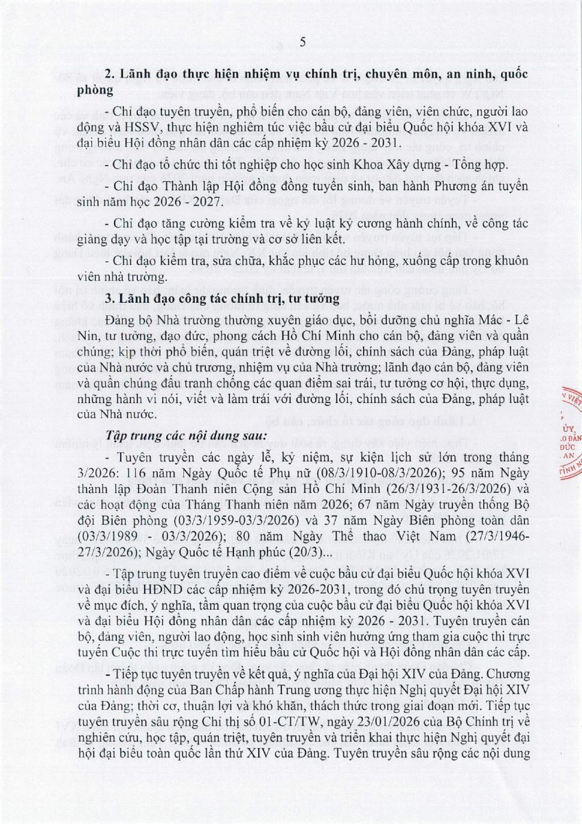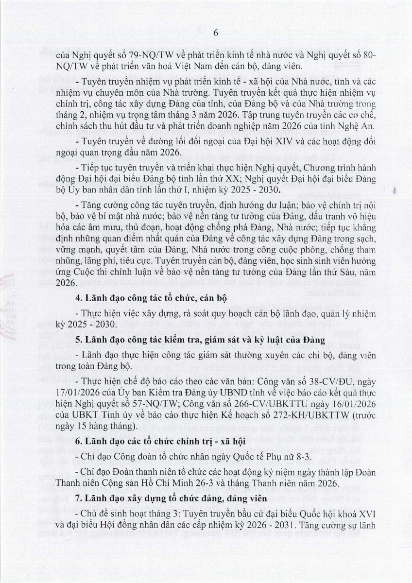 Thông báo của Đảng ủy Trường Cao đẳng Việt - Đức Nghệ An về Kết luận Hội nghị Ban Chấp hành Đảng bộ phiên định kỳ tháng 02 năm 2026